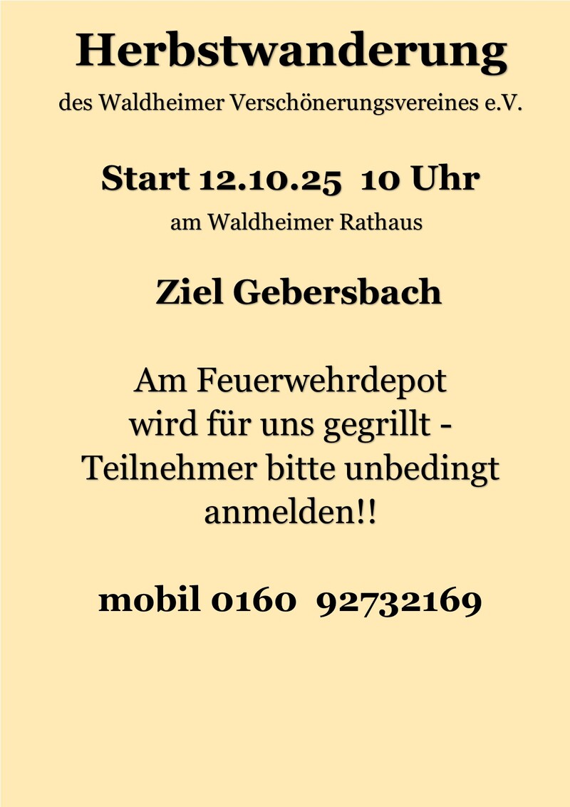 - Am 12.10.2025 startet 10 Uhr unsere Herbstwanderung vom Rathaus über Gebersbach - Meinsberg - Rathaus