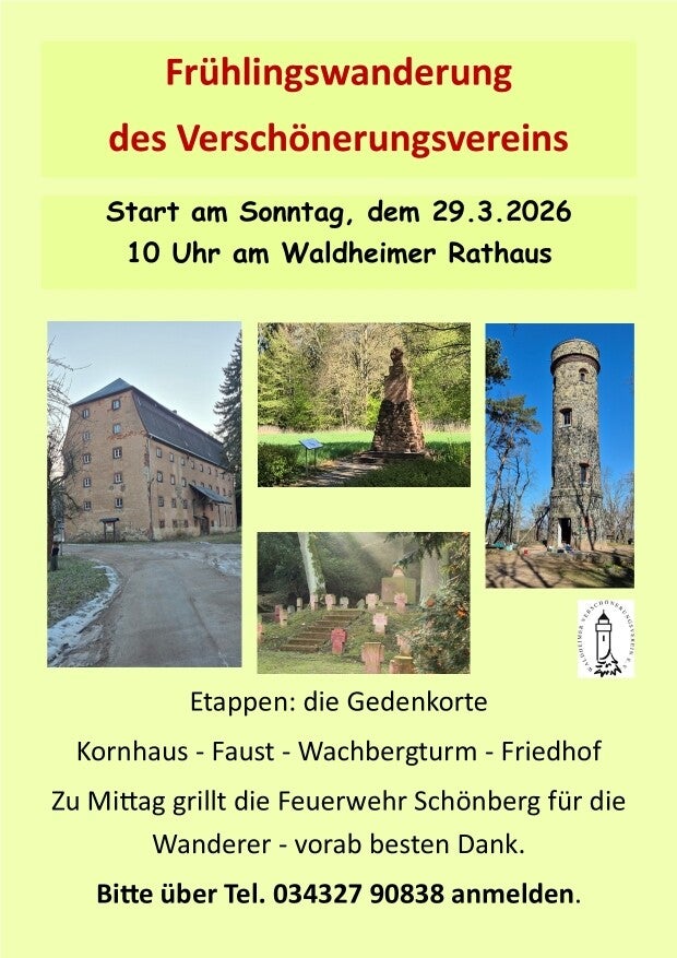 Am Sonntag, 29.03.2026 findet unsere diesjährige Frühjahrswanderung statt. Der Start ist wie immer 10 Uhr am Rathaus.